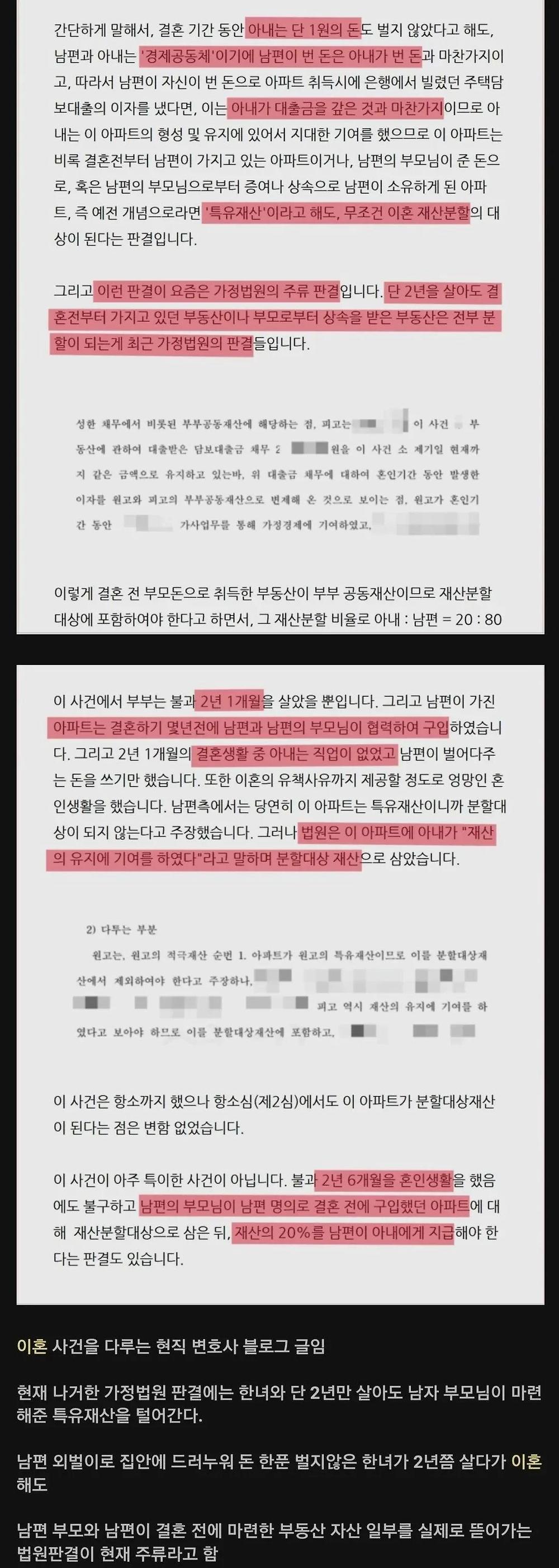 2년만 살고 이혼시에도 특유재산 분할  |