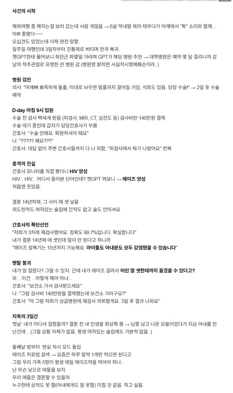 어깨 수술 받으려다 에이즈 오진 받은 썰  |