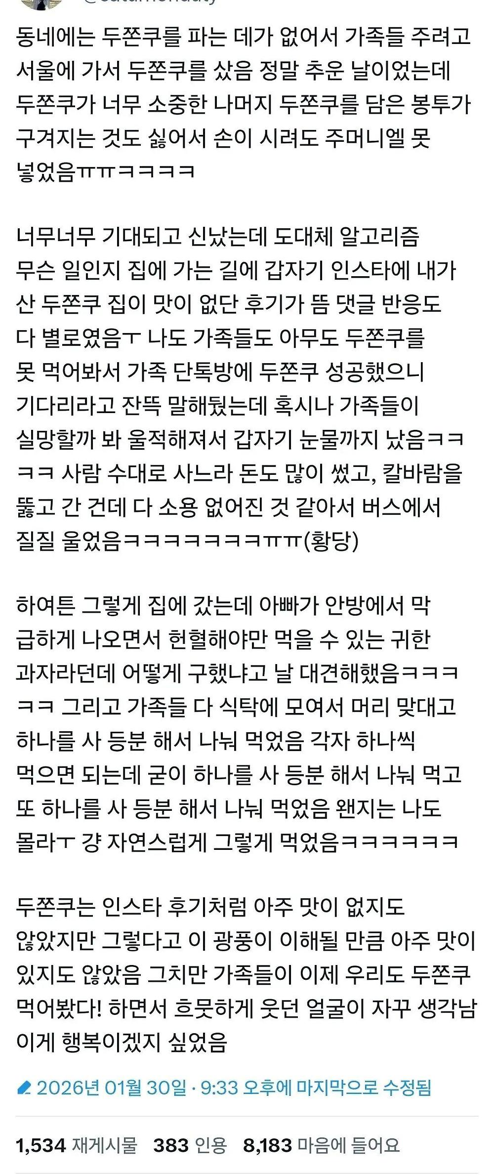 7974 [이슈/유머] 슬슬 시작되고있는 두쫀쿠 사기매물 [3] 웃겨주는매 3 463 26-01-16